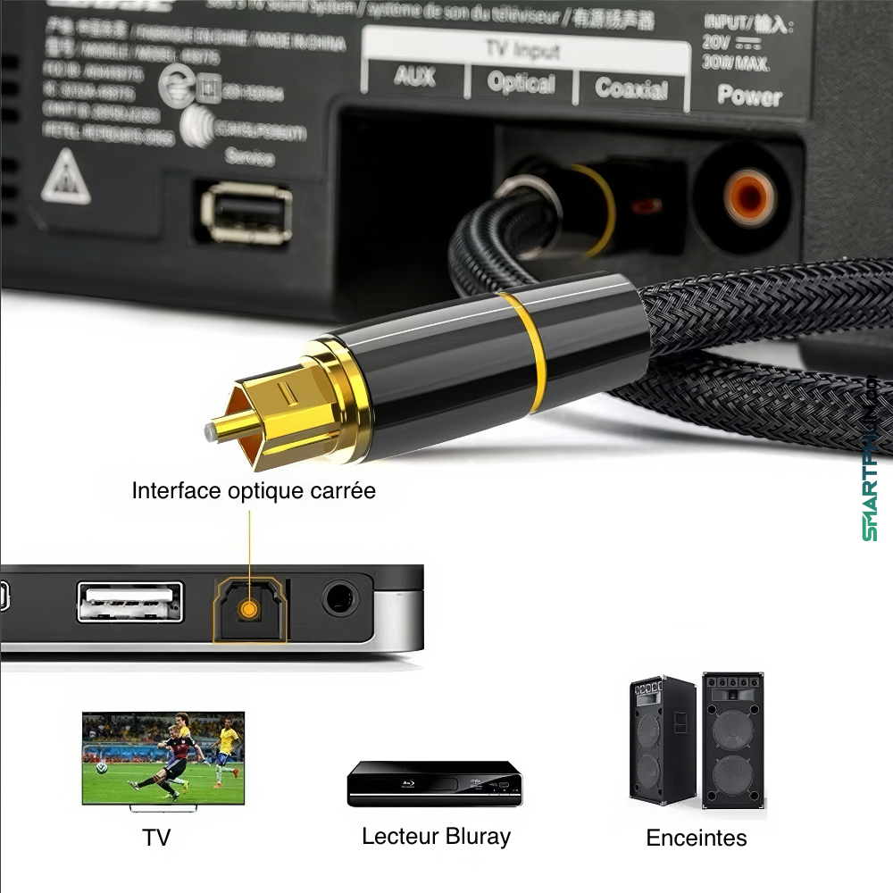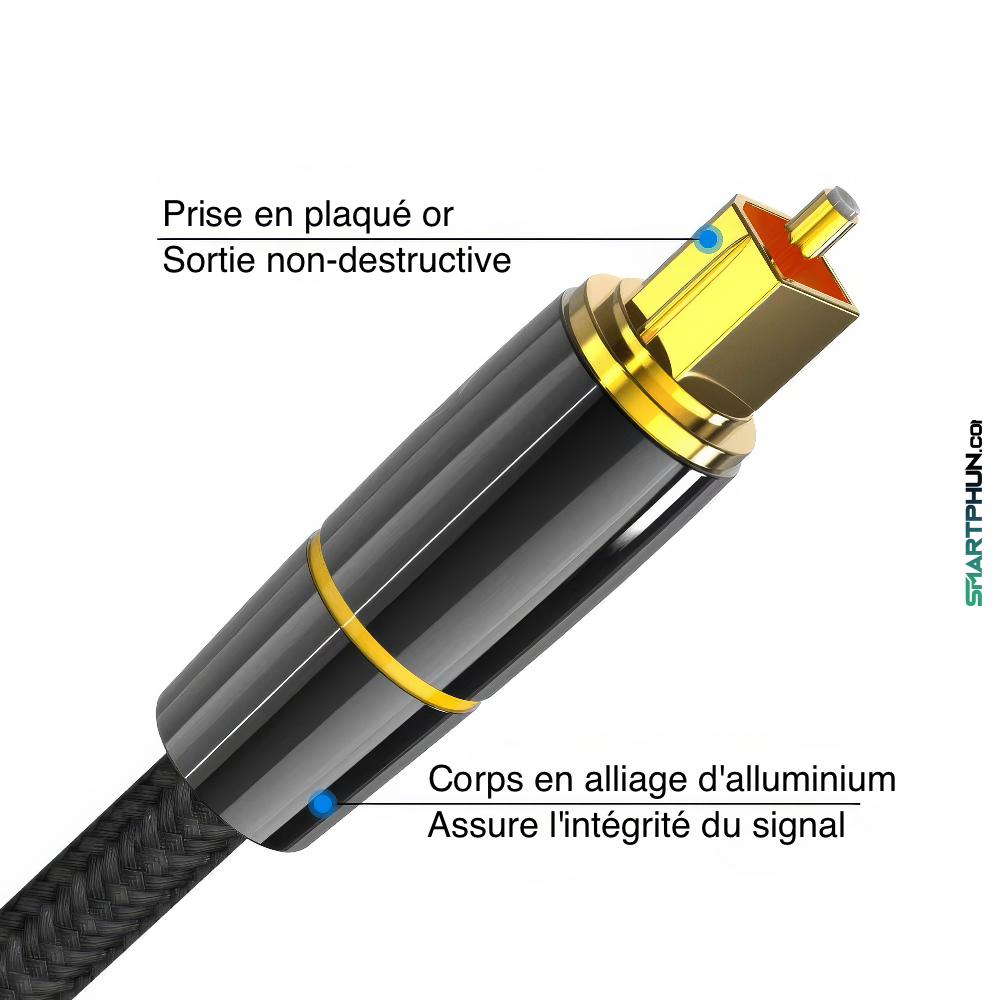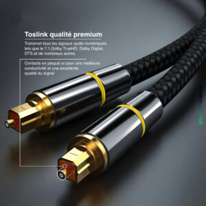 Cable tressé optique audio toslink mâle qualité premium connecteurs plaqué or